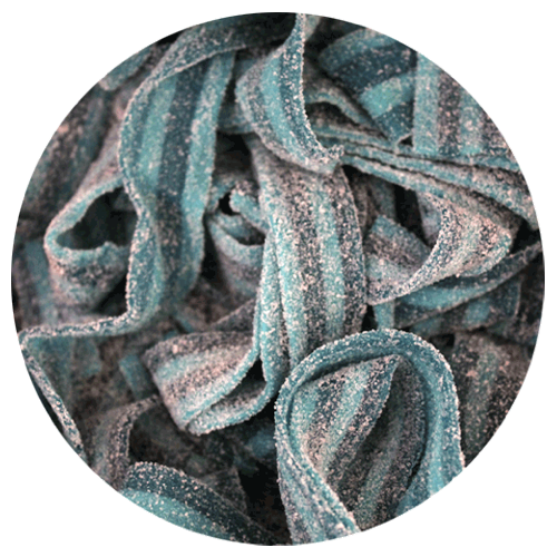 Blue Raspberry Belts bulk candy in a 1.5 lb bag